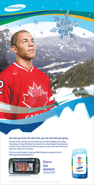WINTER OLYMPICS TV New ideas had to be shared and sold daily (to Samsung / Cheil HQ, North America and Canada). Plus, all creative had to be integrated into a larger thematic platform created and produced by Cheil HQ, and conform to all of the IOC standards. What a work-out! We ended up having a massive presence at the games, brand score increased dramatically as a result and the campaign was very well received and recognized internally.